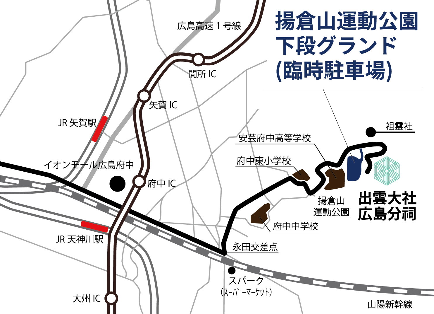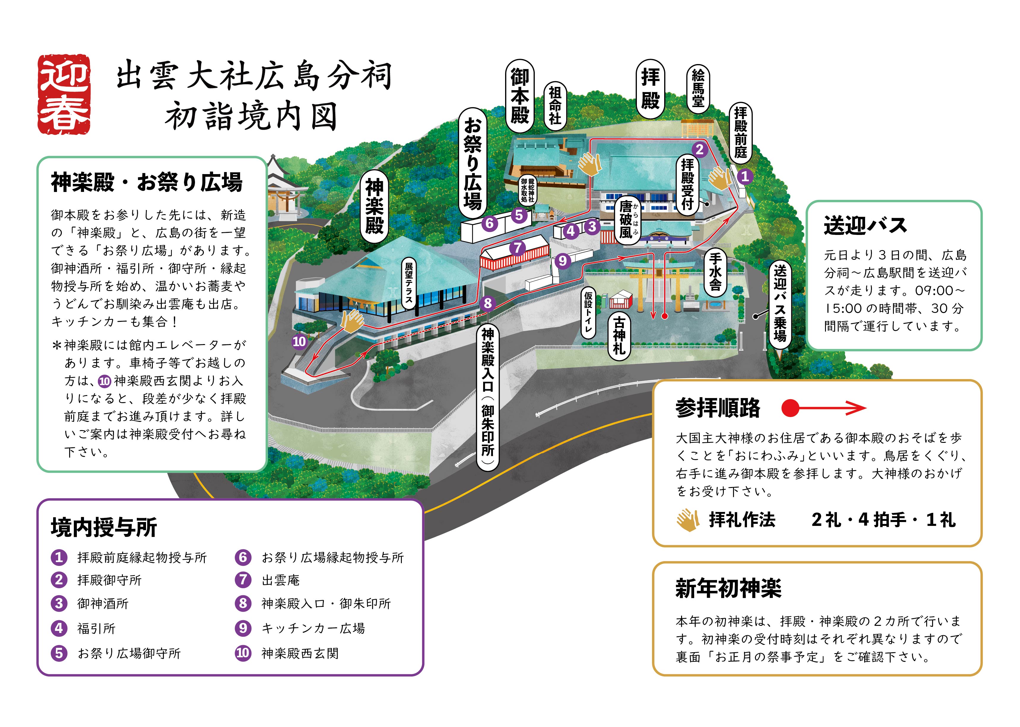 正月三ヶ日、広島駅北口(新幹線口)と、広島分祠の間を送迎するバスを運行いたしますのでご利用ください。